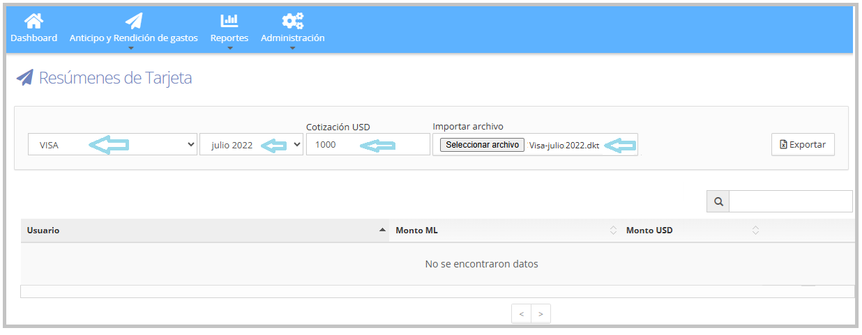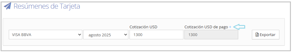 - Nota: T&E Express tomará ambos valores (cotización del cierre de la tarjeta y la cotización de pago) al migrar la información al ERP.