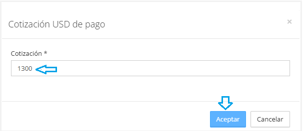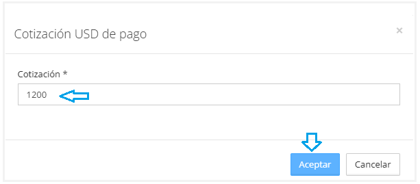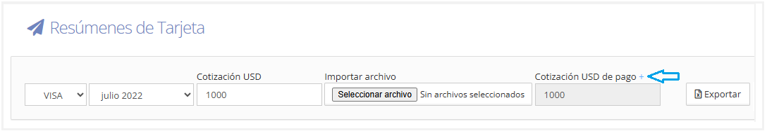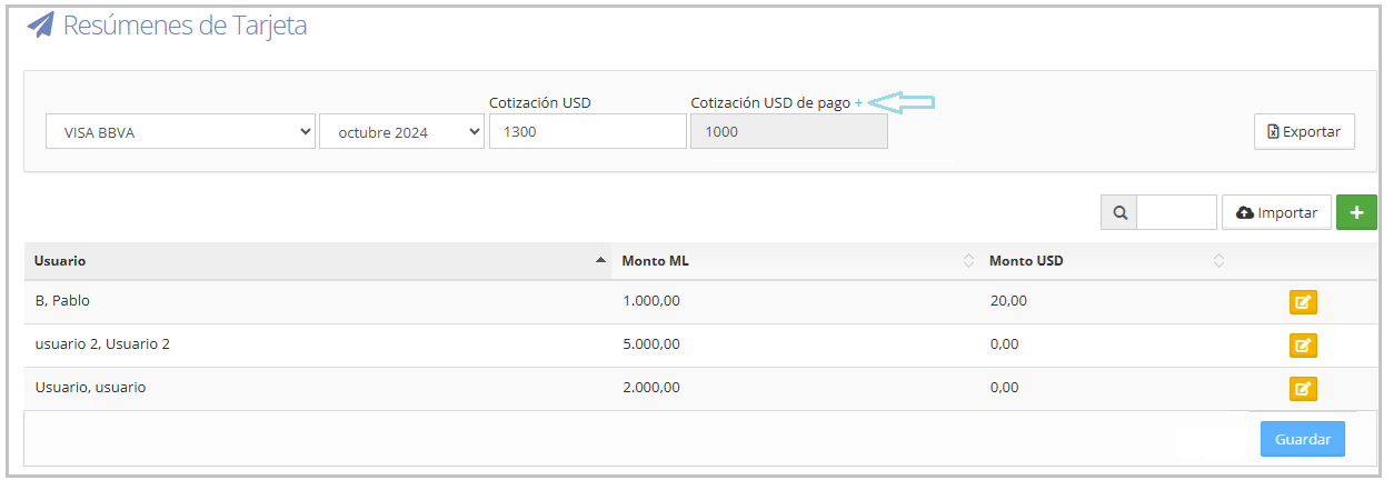 Modificación de la cotización de pago: una vez que la importación haya finalizado, podrás modificar la cotización de pago haciendo clic en el botón + color azul.