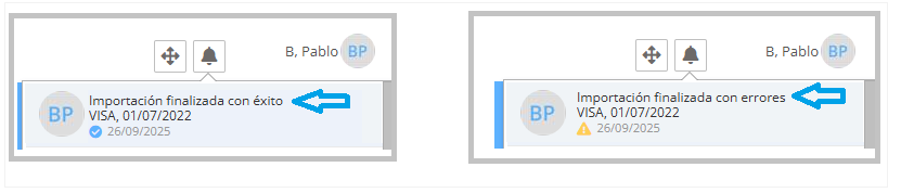 El usuario podrá verificar el estado del proceso de importación directamente desde las notificaciones del sistema.