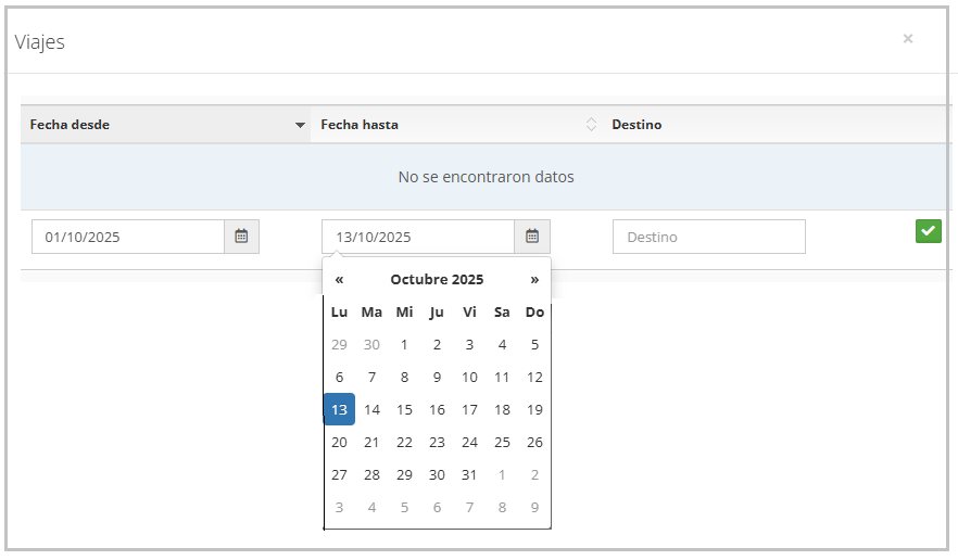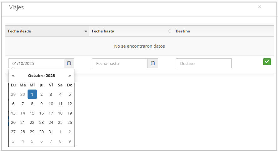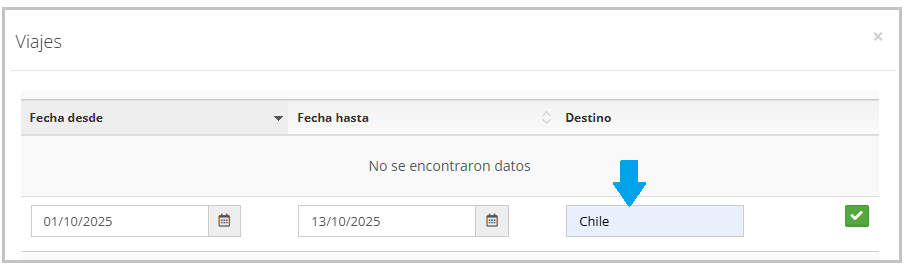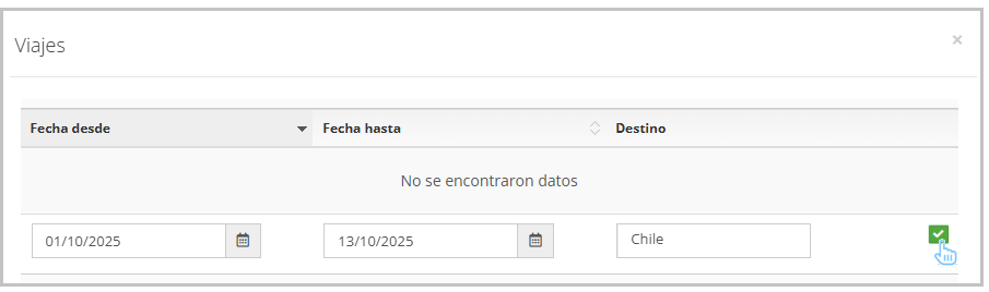 Una vez completados los campos, hacer clic en el ícono ✔ para agregar el viaje.
