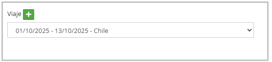 Al registrar un nuevo gasto y completar la fecha, el sistema listará automáticamente el viaje correspondiente dentro de ese rango de fechas.