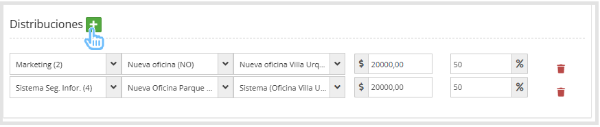 Distribuciones: Si esta parametrización se encuentra habilitada, podrás distribuir a diferentes centros de costos desde el Desglose.