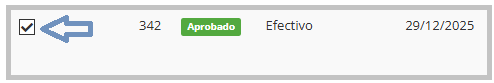 Una vez que las devoluciones de dinero de la rendición hayan sido confirmadas como recibidas (ícono en azul), se visualizará el checkbox en el historial de la rendición para pasar a estado Rendido.