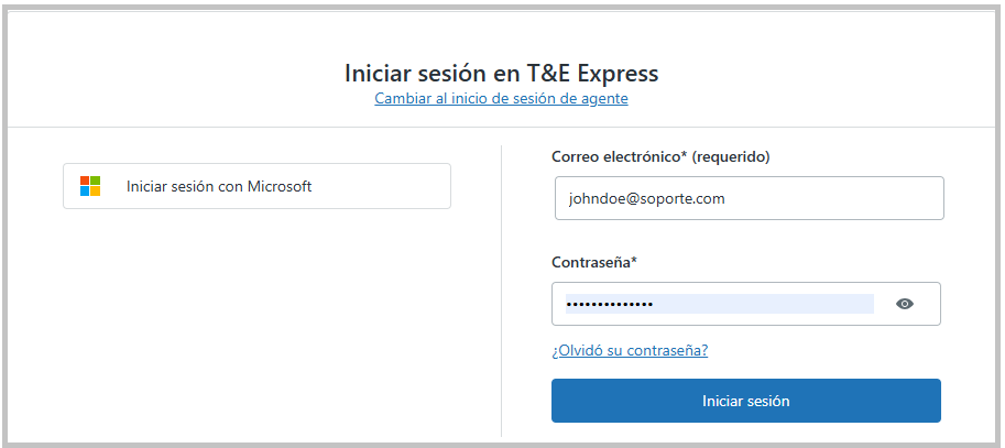 Recorda que este usuario NO es el mismo que utilizas en el sistema de T&E Express, sino un usuario distinto para el portal de soporte.