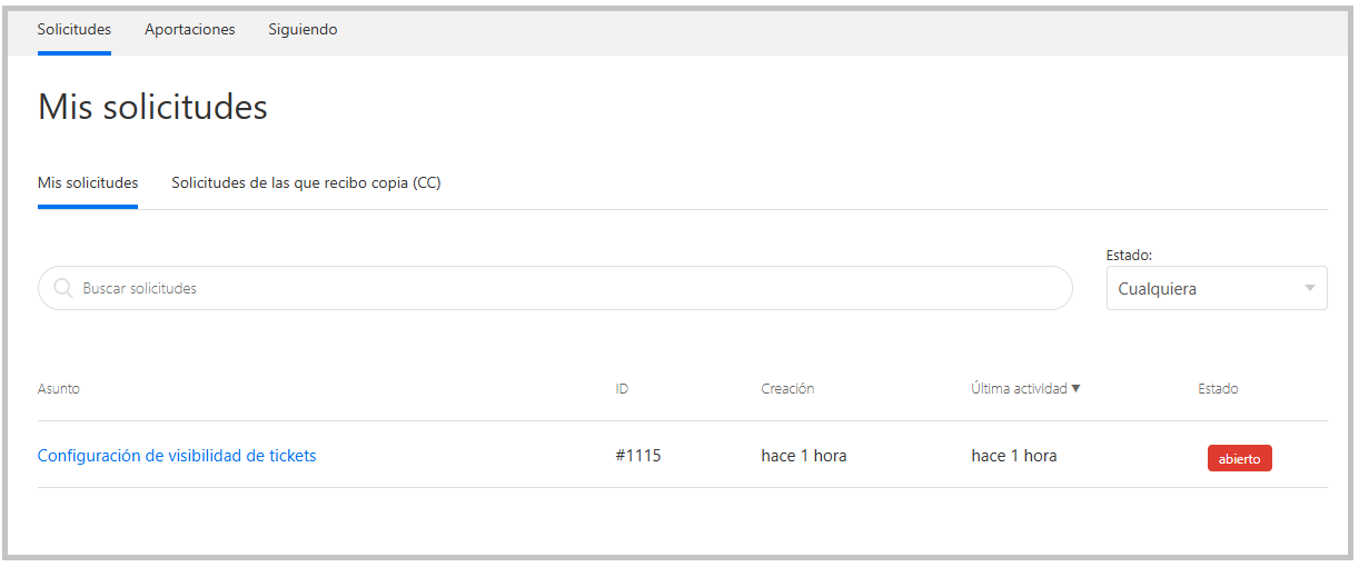 Cuando los usuarios de soporte Nivel 1 se registran por primera vez o se agregan nuevos usuarios, se debe generar un ticket (ver Paso 3 de como Crear solicitud) al equipo de T&E Express para habilitar la opción que permita al usuario de Soporte Nivel 1 visualizar todos los tickets de la empresa. Esto permite hacer seguimiento de todas las solicitudes y no solo de las propias.