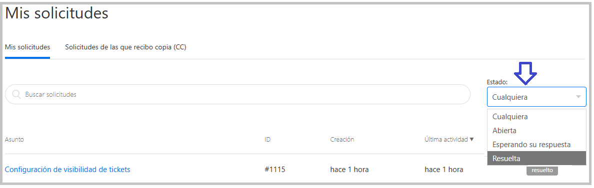 Se enlistarán los tickets generados. Desde esta misma pantalla, también se podrán filtrar y visualizar los tickets según su estado.