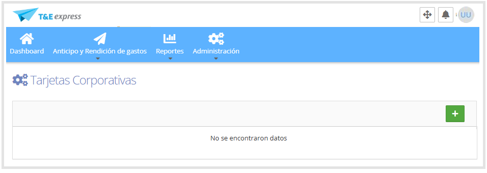 Botón + : Crear nueva tarjeta corporativa.